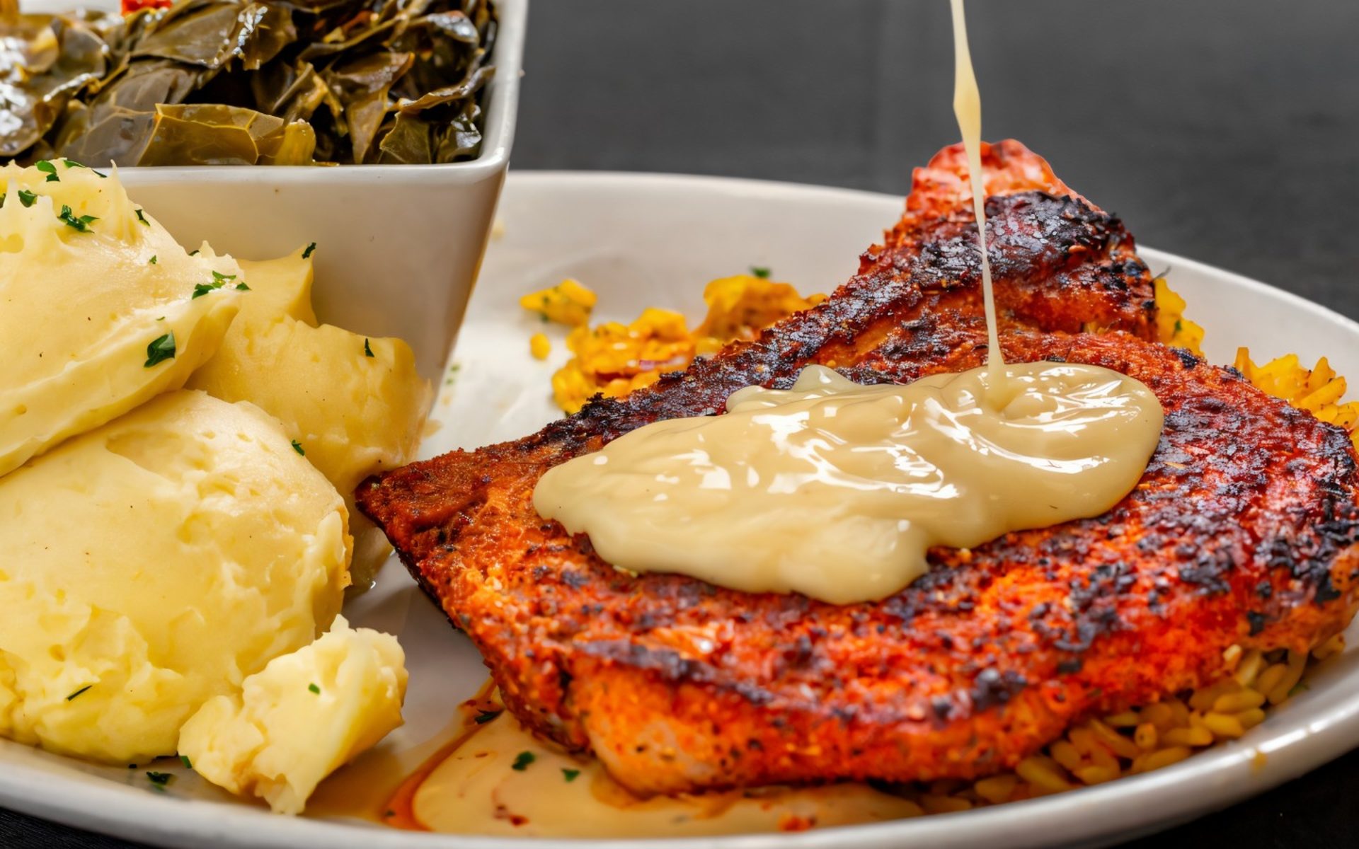 We are known for Cajun Salmon, Desserts, Tea, Chicken, BBQ Ribs, Fried Chicken, Salmon, Fish, Dessert, Fried Catfish, Shrimp, Collard Greens, French Fries, Chicken Sandwich, Cornbread, Sandwiches, Chicken Tenders, Burgers, Salads, Southern Fried Chicken, Fries, Fried Wings, Fried Shrimp, Sweet Potato Pie, Caesar Salad, and Salad